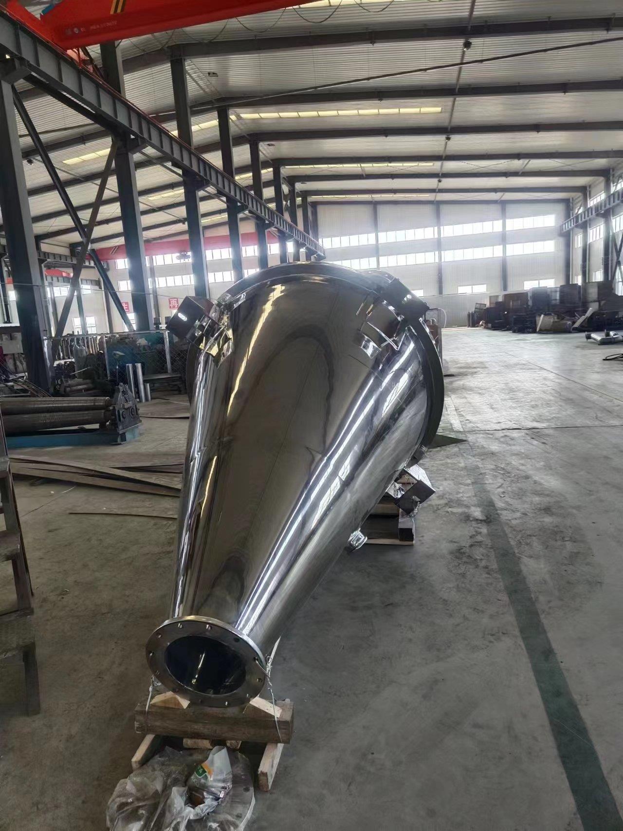 由加熱錐體設(shè)有加熱夾套,熱源為熱水、導(dǎo)熱油或低壓蒸汽,從而使錐體內(nèi)壁保持溫度。變頻調(diào)速電機(jī)經(jīng)平行斜齒輪減速機(jī),驅(qū)動(dòng)單螺帶攪拌器旋轉(zhuǎn),帶動(dòng)物料沿錐型筒旋轉(zhuǎn)并自下而上提升,物料到達(dá)至高點(diǎn)后由重力和慣性作用,自動(dòng)流向旋渦中心回到錐型筒體底部,整個(gè)過(guò)程使物料在錐型筒體內(nèi)強(qiáng)制加熱,相對(duì)對(duì)流、摻混,熱量在物料中相互擴(kuò)散,使物料不規(guī)則往復(fù)運(yùn)動(dòng),完成物料同單螺帶和筒壁表面進(jìn)行高頻率傳熱交換,在短時(shí)間內(nèi)達(dá)到加熱干燥的效果。從而使物料內(nèi)部水份不斷蒸發(fā),在真空泵的作用下,水蒸汽由真空泵引出,如須回收液體可加冷凝器、回收液儲(chǔ)罐回收。干燥完成后,打開(kāi)下部的出料閥出料。
